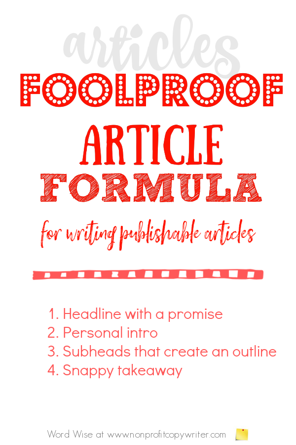 In fact, that’s what I did when I wrote this very article. Each subhead outlines one step I take as I follow my article formula.