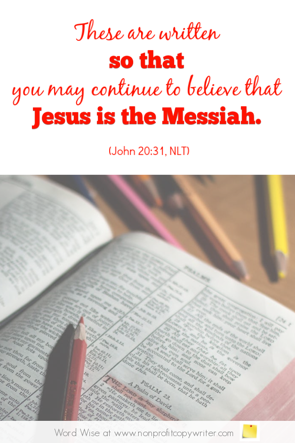 The disciples saw Jesus do many other miraculous signs in addition to the ones recorded in this book. But these are written so that you may continue to believe that Jesus is the Messiah, the Son of God, and that by believing in him you will have life by the power of his name. (John 20:30-31, NLT)