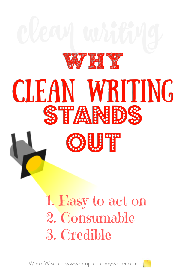 That’s a lot of words competing with yours to be understood, whether it’s on the web, in social media, or in print. Clean writing stands out because …