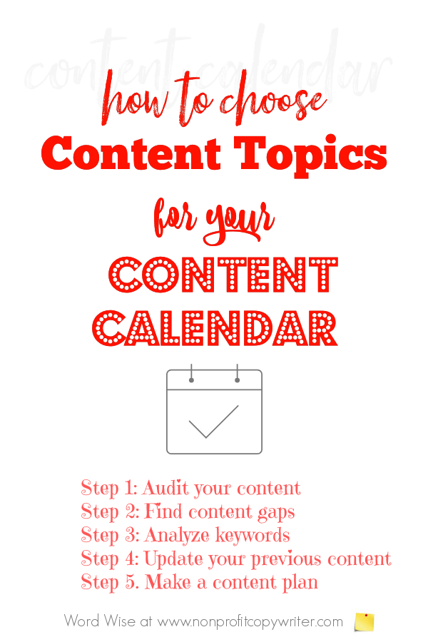 I hope you try it. No matter what your content writing goal or the size of your completed content inventory, these steps will make choosing content topics for your content calendar easier.